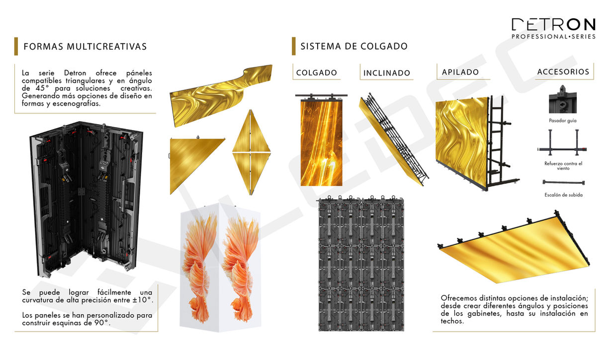 En la evolución de la industria de touring nace DETRON, una nueva serie de LEDEC; que tiene como objetivo el afrontar cualquier necesidad emergente de los eventos en vivo. Demostrando con su calidad de pantalla, accesorios, montaje y métodos de traslado, una revolución en la industria de la tecnología en pantallas LED.
